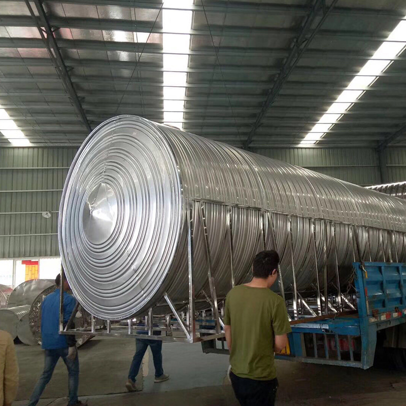 圓形不銹鋼水箱運用進口波紋滾筋機在板材表面形成均勻分布的波紋加強筋,大幅提高板材的強度與任性,從而使水箱更堅固,焊接處利用直流高頻脈沖焊機焊接,接縫一次成型,抗拉